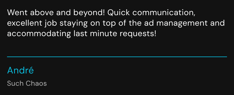 A senior ads expert working behind the scenes, invisible to your client and fully accountable to you.